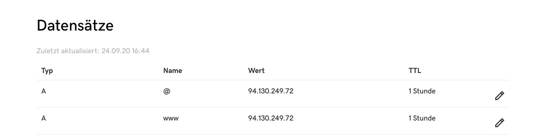 1. Record type: A Host: @ Value: 94.130.249.722. Record Type: A Host: www Value: 94.130.249.72